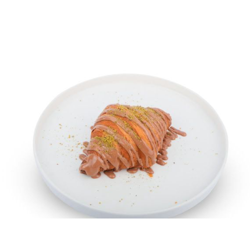 Çikolata, muz, çilek, krep kırığı ve antep fıstığı parçaları ile servis edilir. Dilerseniz ekstralar bölümden ekleme yapabilirsiniz.